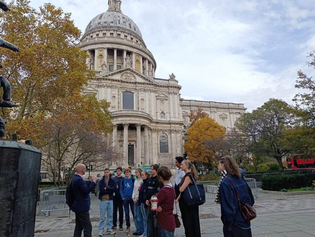 Geschiedenisleerkracht Harry De Paepe , tevens Vlaanderens bekendste anglofiel en collega Dominique Louagie begeleidden deze week onze leerlingen van het 5de en 6de jaar Moderne Talen op hun uitstap in Londen.