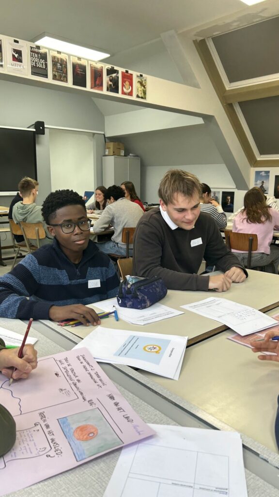 Ook de vijfdejaars gingen in dialoog rond democratie. Ze deelden inzichten vanuit hun eigen levensbeschouwing, stelden elkaar kritische vragen en kregen zelfs een bijzondere uitdaging: